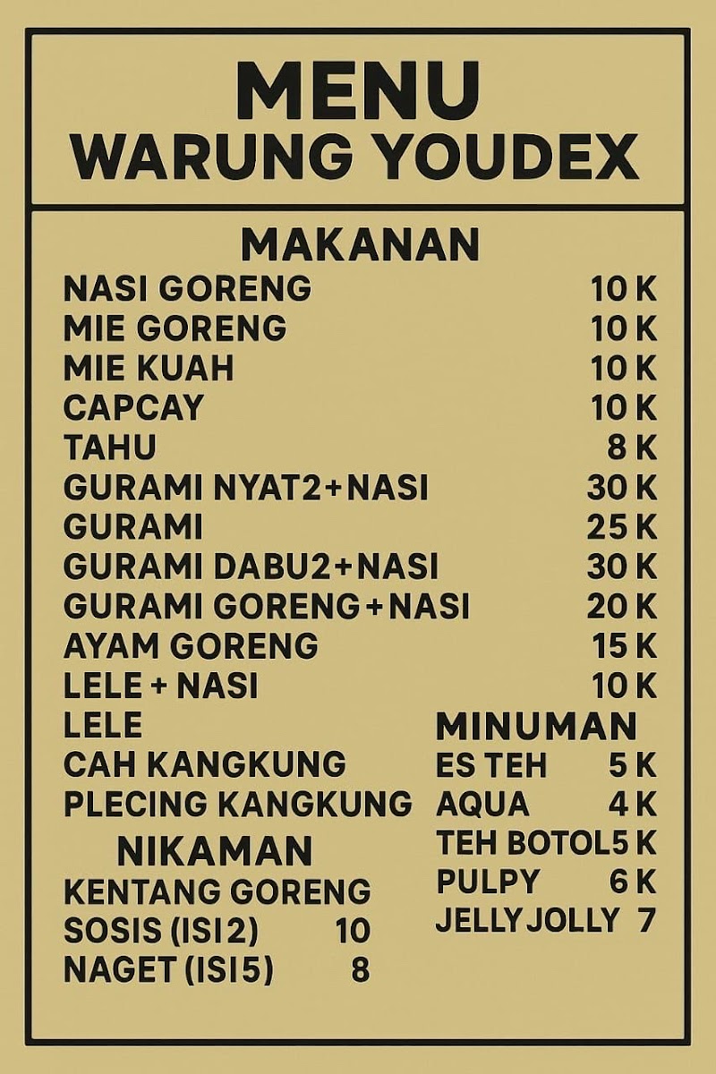 Visit Warung Makan You DEX, and rediscover what makes food not just a necessity, but a joyful experience. Your taste buds will thank you!